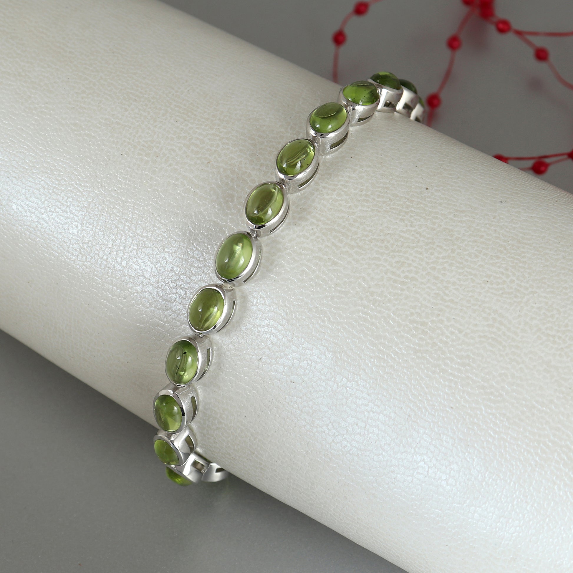 Natural Peridot Tennis Bracelet-925 Sterling Silver-Oval Cabochon Gemstone Bracelet-Peridot Jewelry-Handmade Bracelet-Wedding Gift for Her