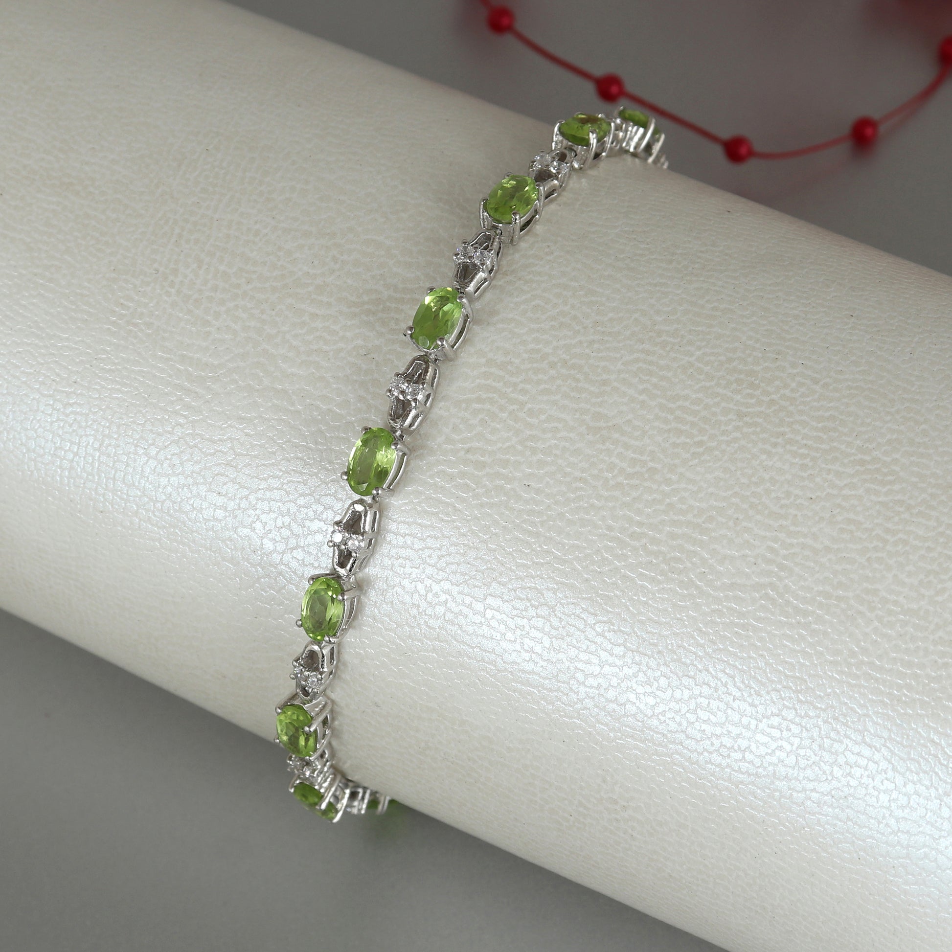 Natural Peridot Tennis Bracelet-925 Sterling Silver Bracelet-August Birthstone-Peridot Jewelry-Gemstone Tennis Bracelet-Wedding Gift for Her