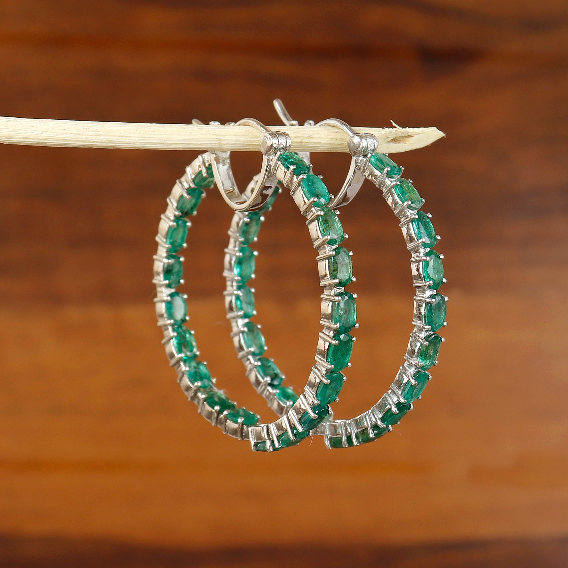 Natural Emerald Hoop Earrings-925 Sterling Silver Earrings-Oval Cut Gemstone Hoops-May Birthstone Earrings-Emerald Jewelry Gift for Her