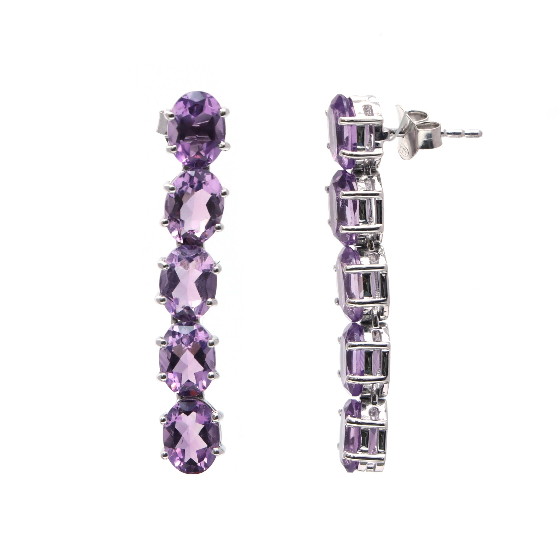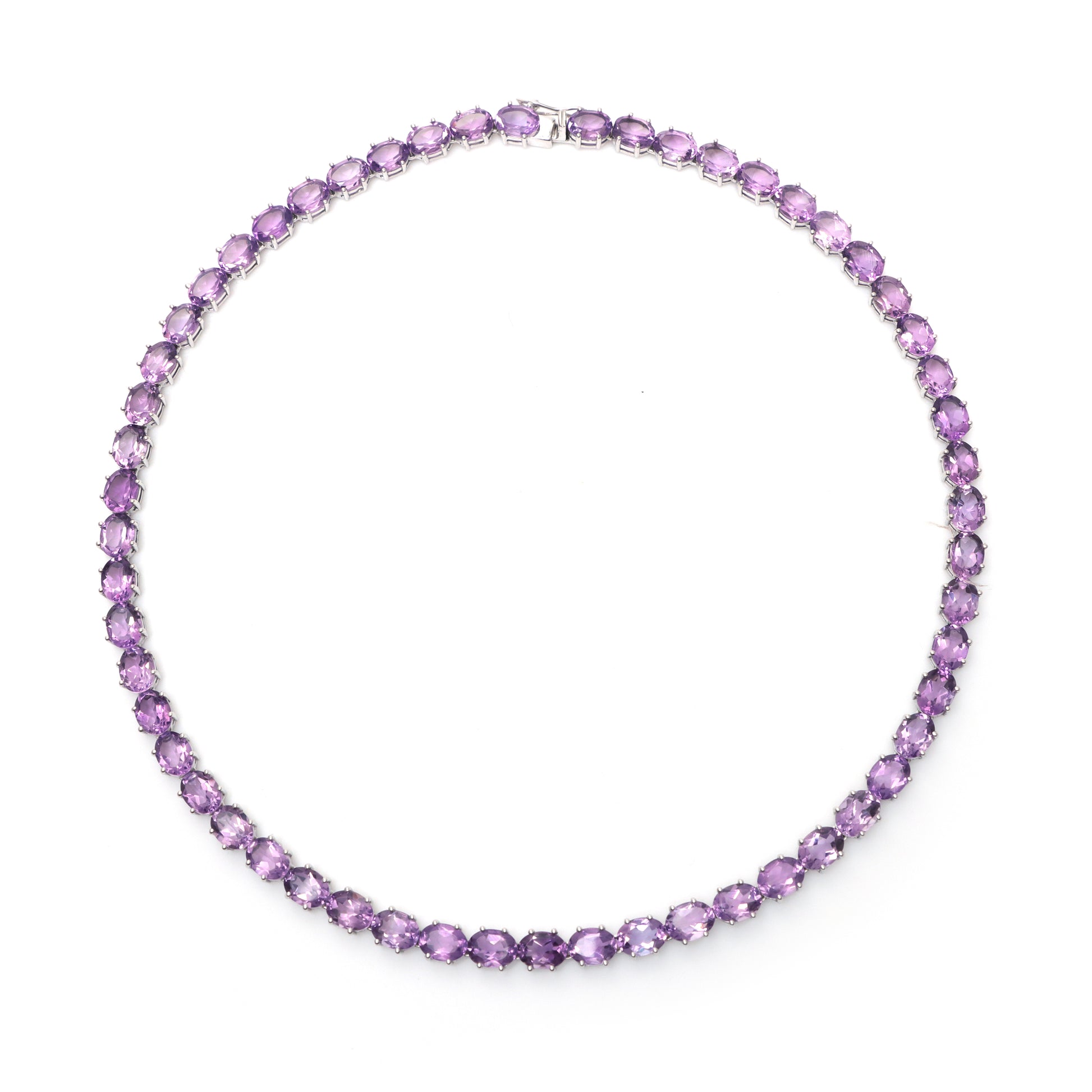 Natural Amethyst Oval Cut Gemstone Necklace Set 925 Sterling Silver Necklace Amethyst Tennis Necklace with Earrings