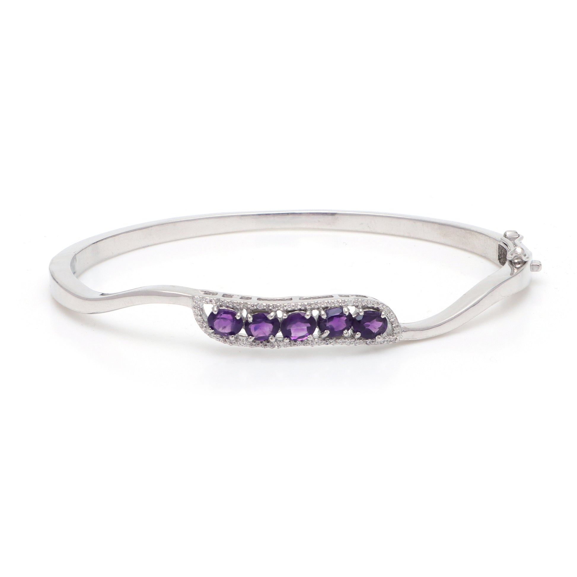 Natural Amethyst Oval Cut Gemstone Bangle 925 Sterling Silver February Birthstone Bangle Gift for Her