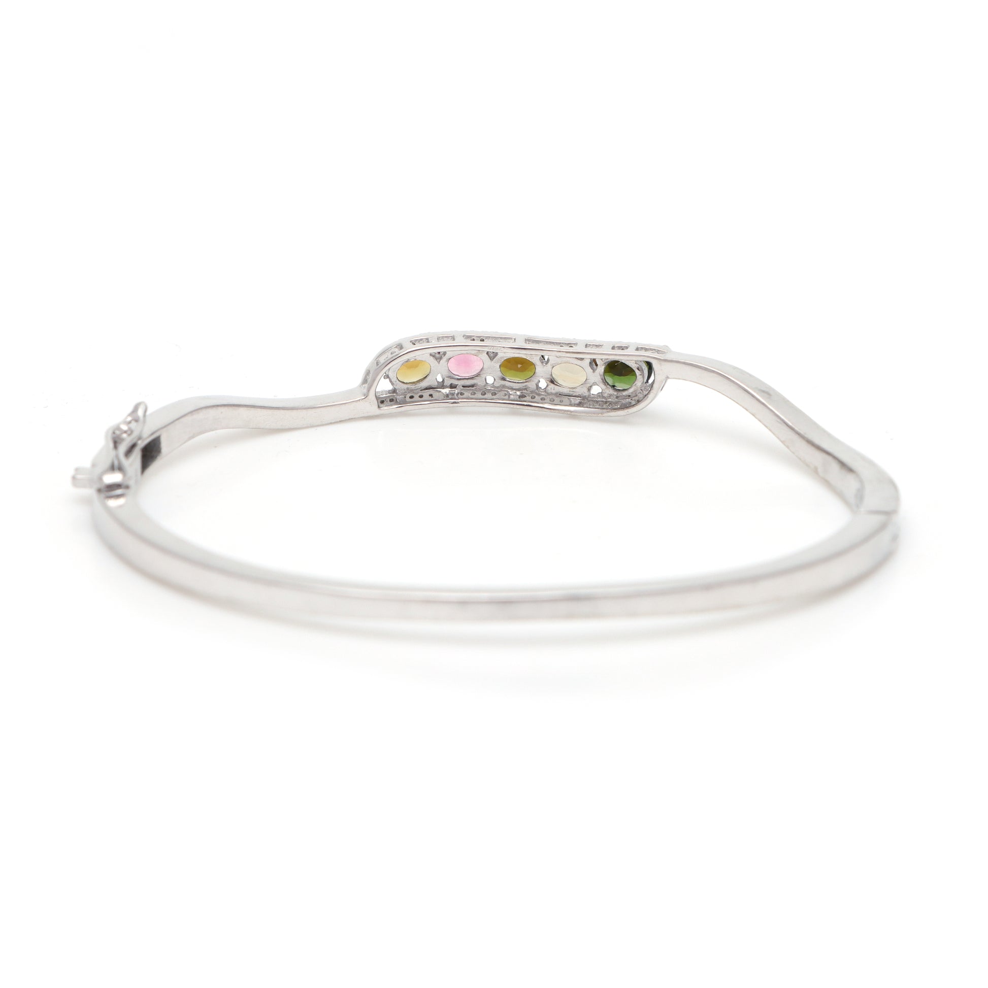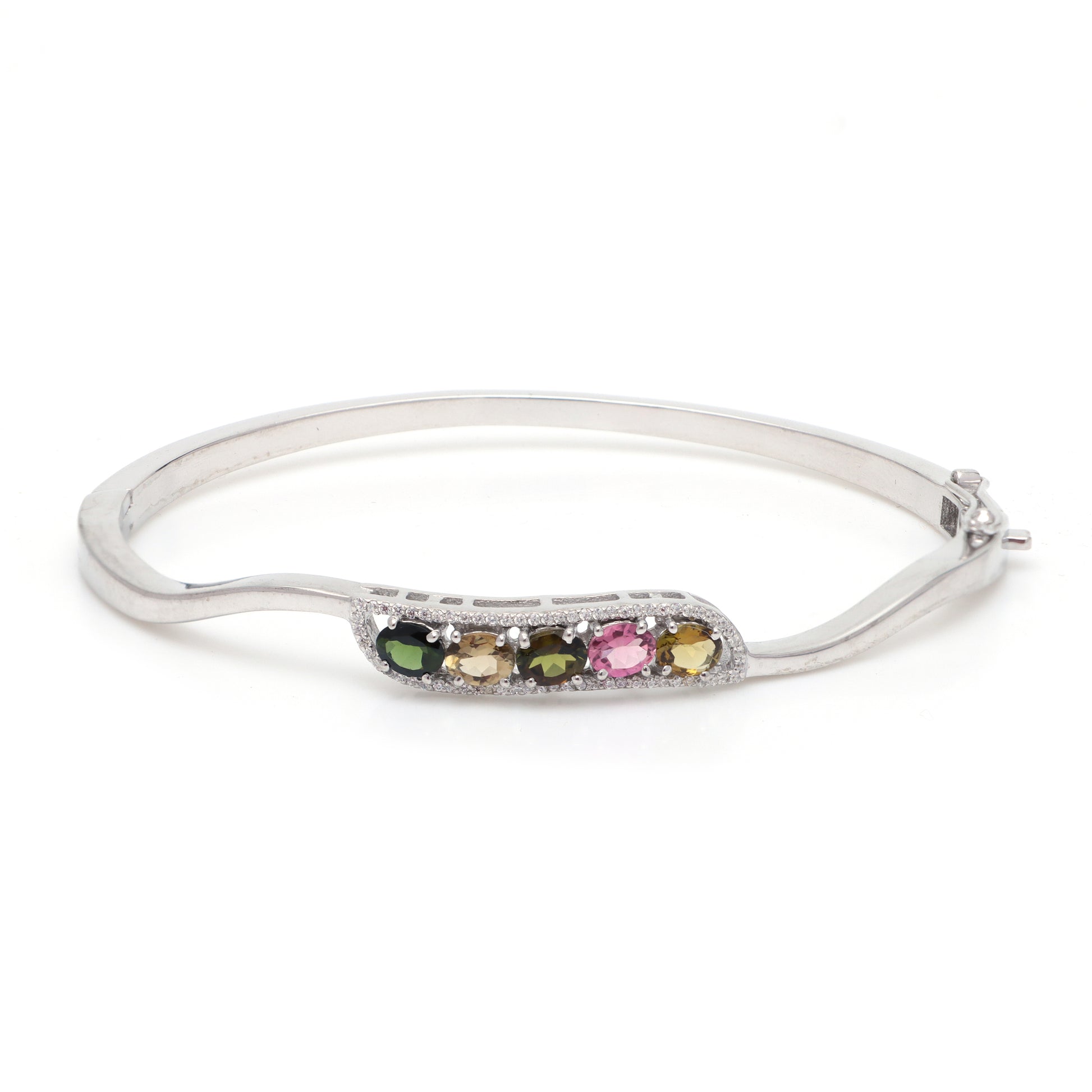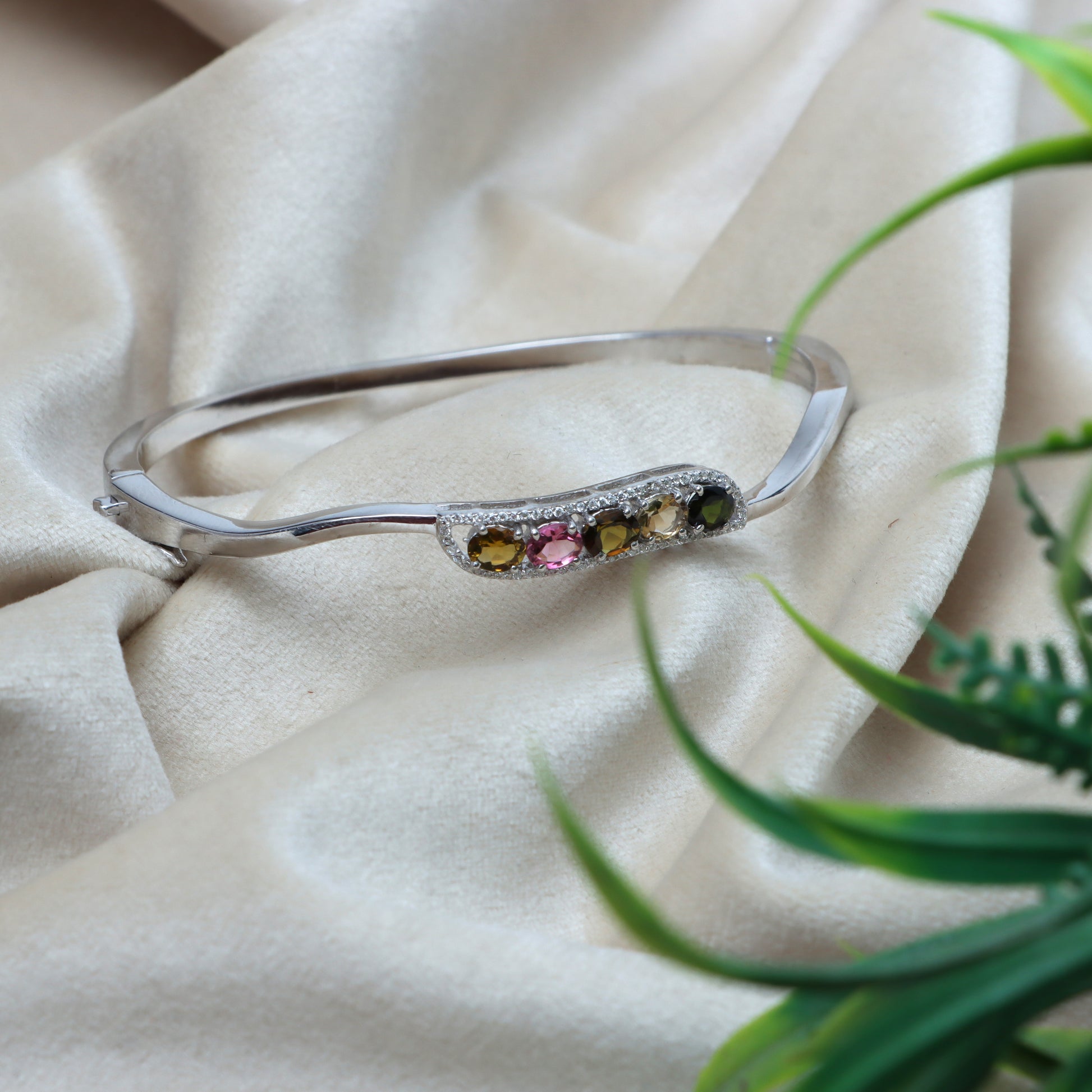 Natural Multi Tourmaline Oval Cut Gemstone Bangle 925 Sterling Silver October Birthstone Bangle Gift for Her