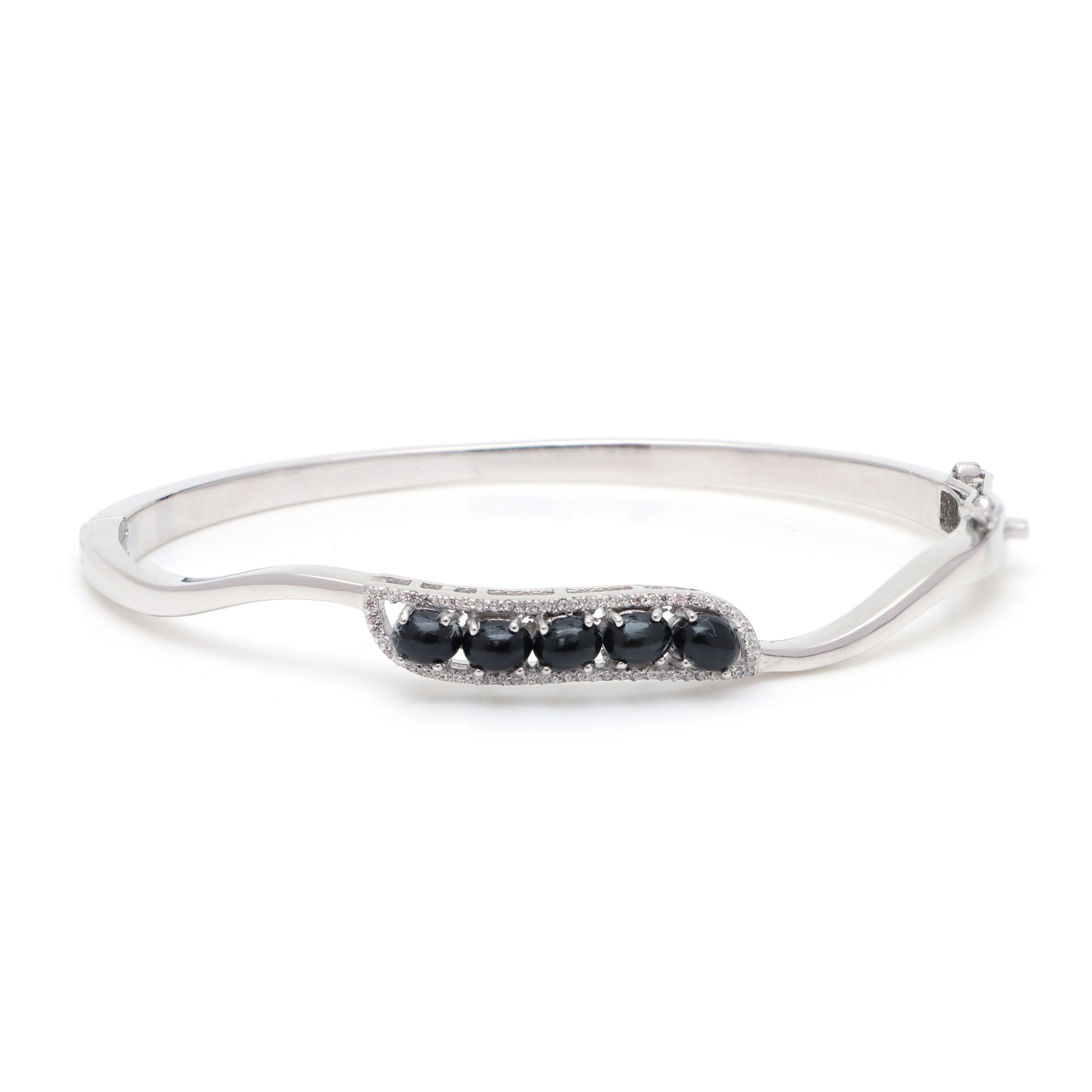 Black Star Cluster Bangle 925 Sterling Silver Oval Cabochon Gemstone Bangle Anniversary Gift for Her