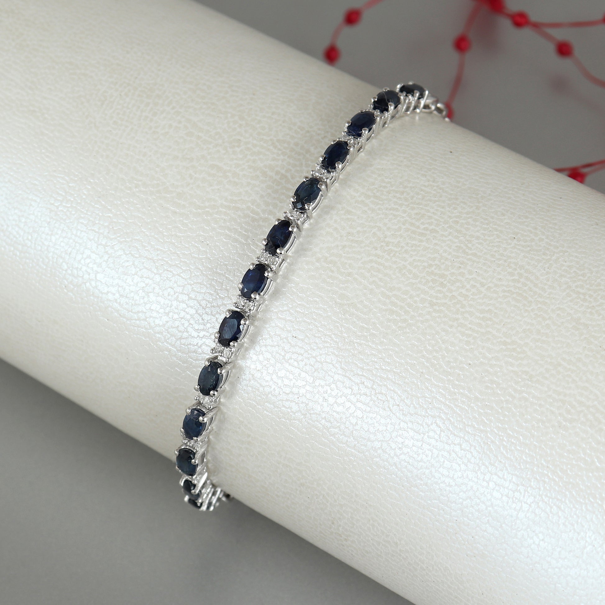 Natural Blue Sapphire Tennis Bracelet-925 Sterling Silver Bracelet-September Birthstone Bracelet-Diamond Bracelet-5x3mm Gemstone Bracelet