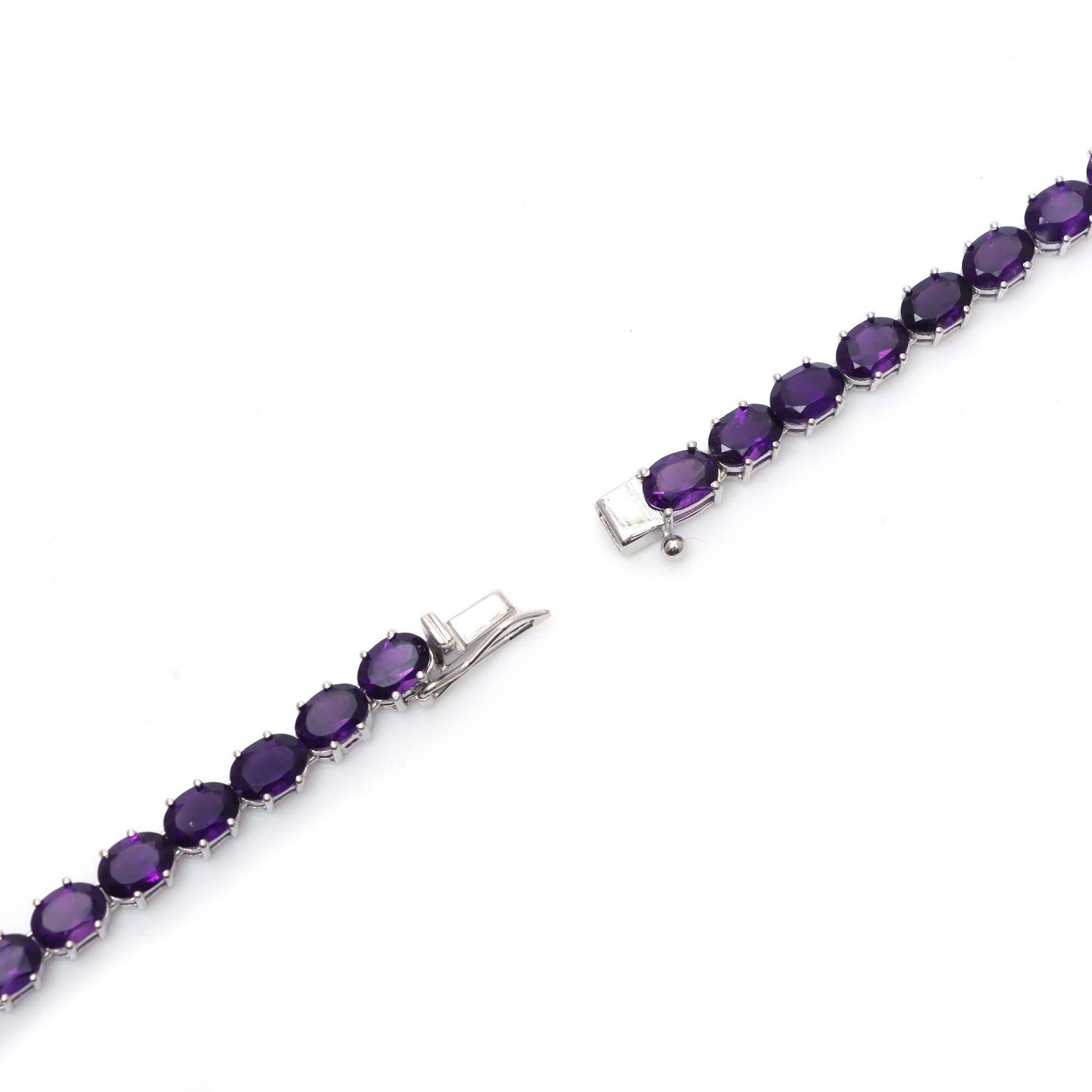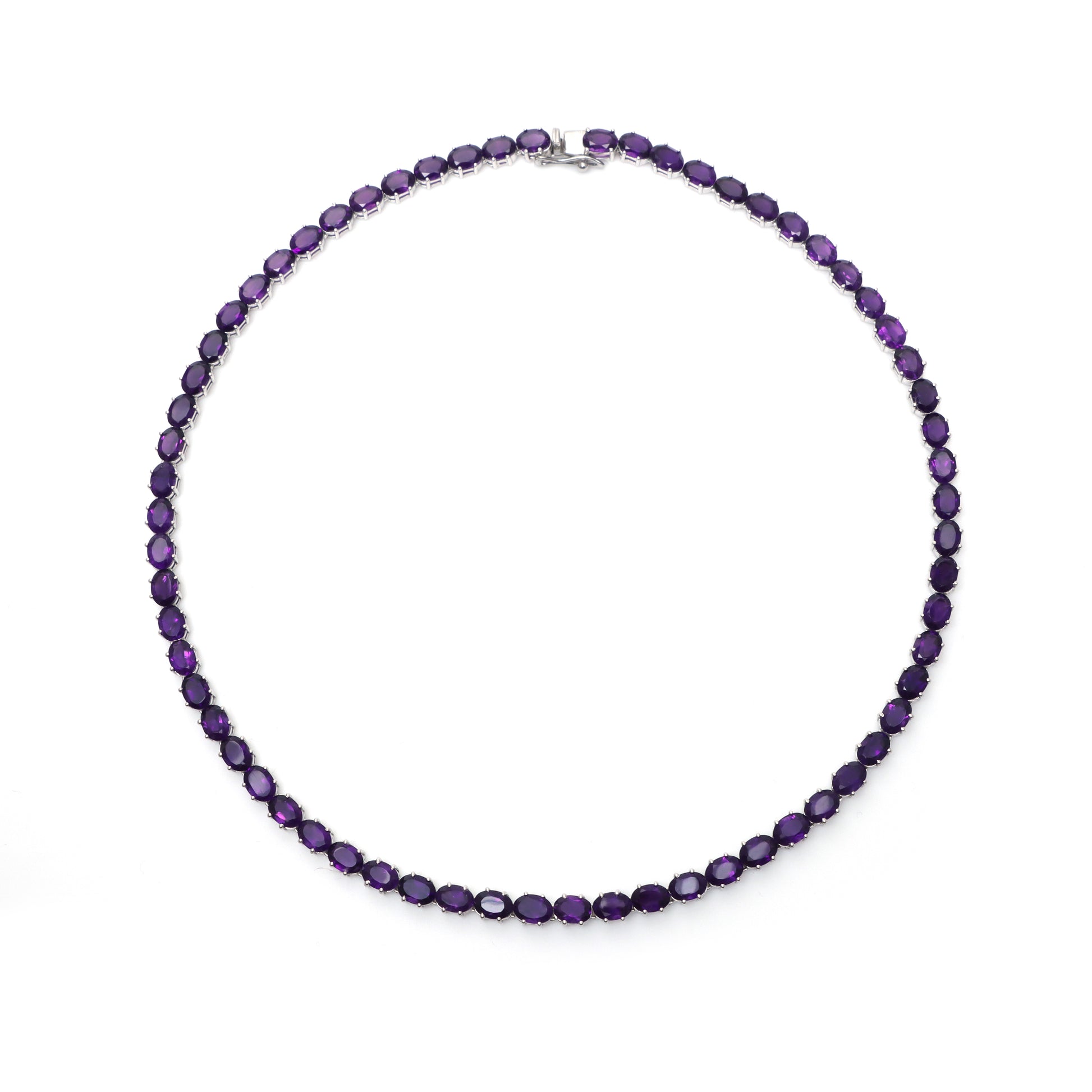 Natural African Amethyst Oval Cut Gemstone Necklace 925 Sterling Silver Necklace Amethyst Tennis Necklace