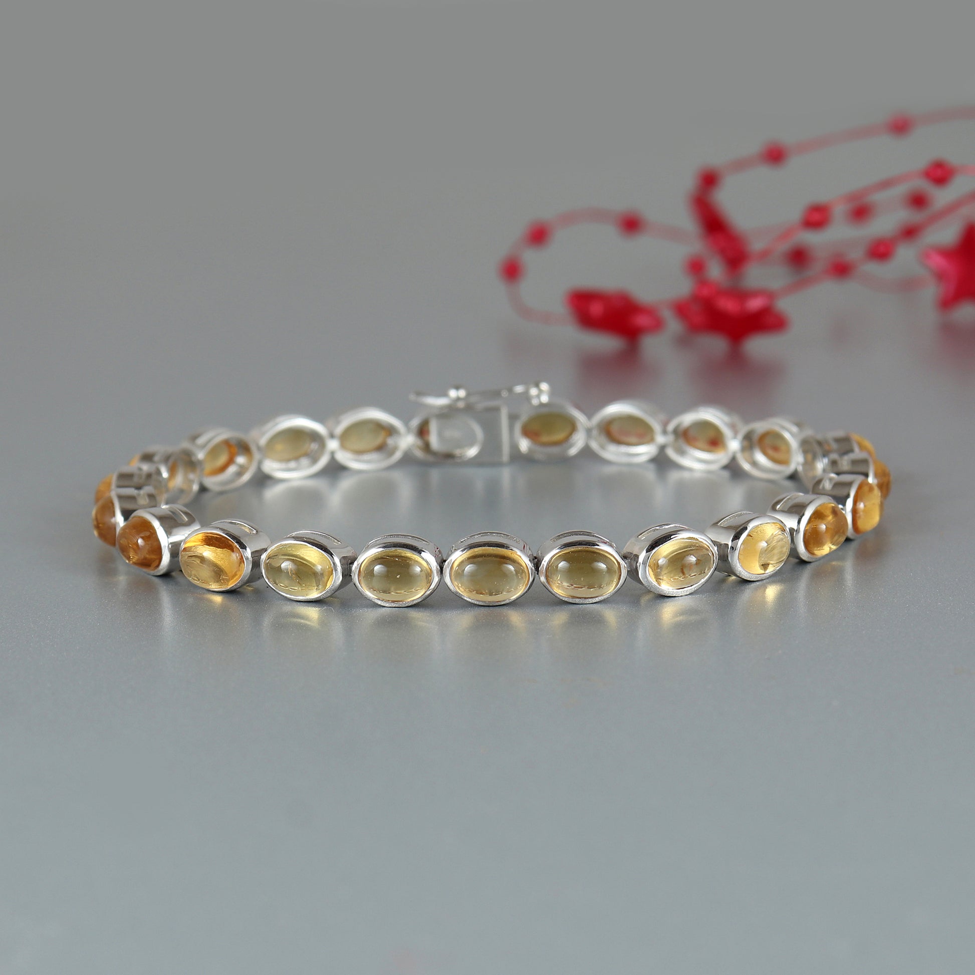 Natural Citrine Tennis Bracelet-925 Sterling Silver Bracelet-Oval Cabochon Bracelet-Gemstone Tennis Bracelet-Bridesmaid Bracelet for Gift