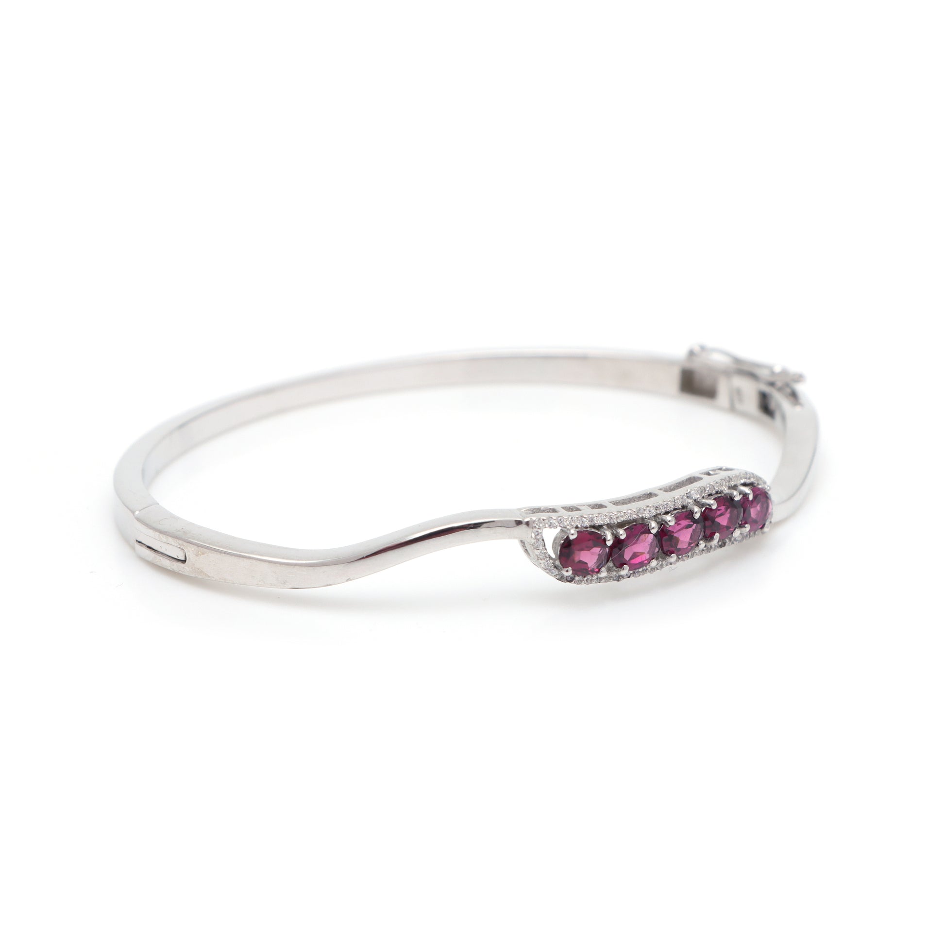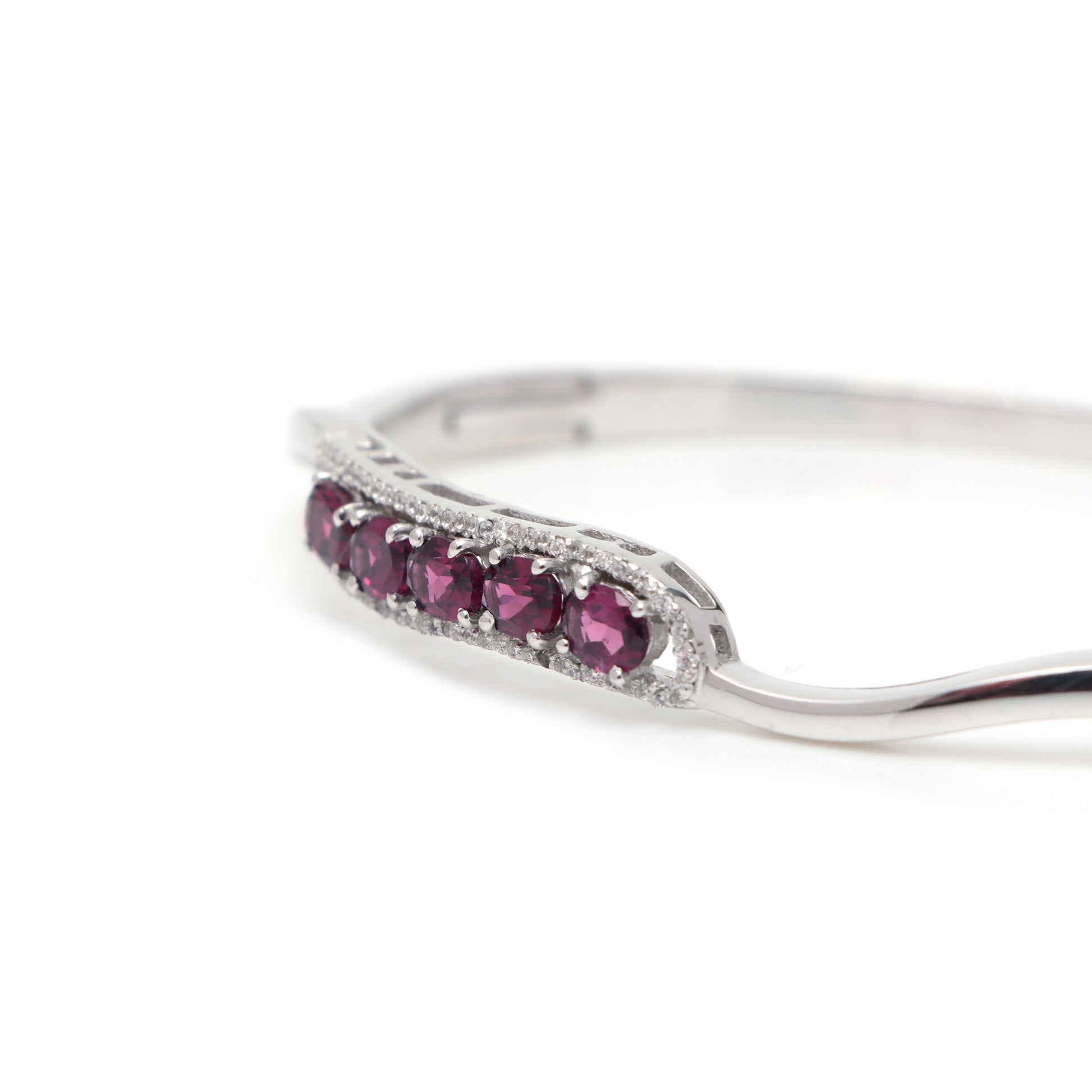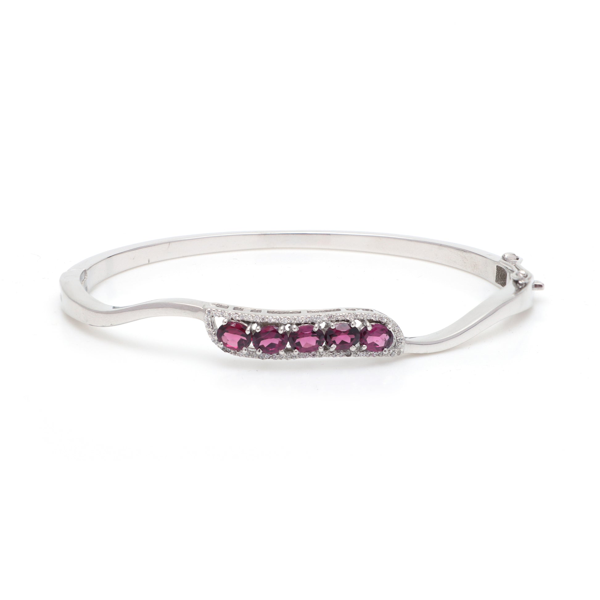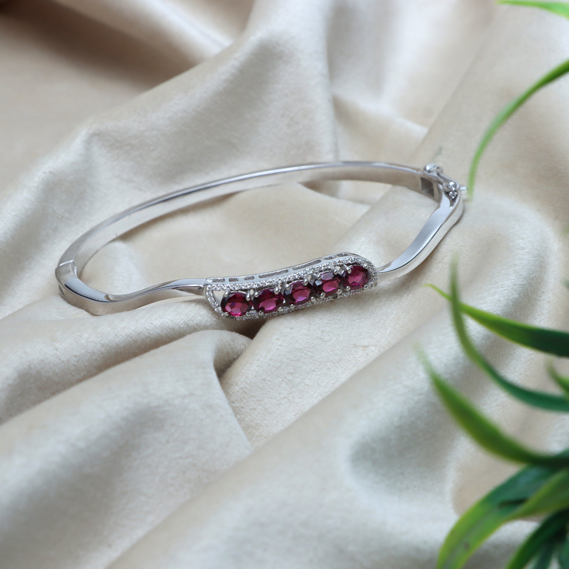Rhodolite Garnet Oval Cut Gemstone Cluster Bangle 925 Sterling Silver Handmade Bangle Gift for Her