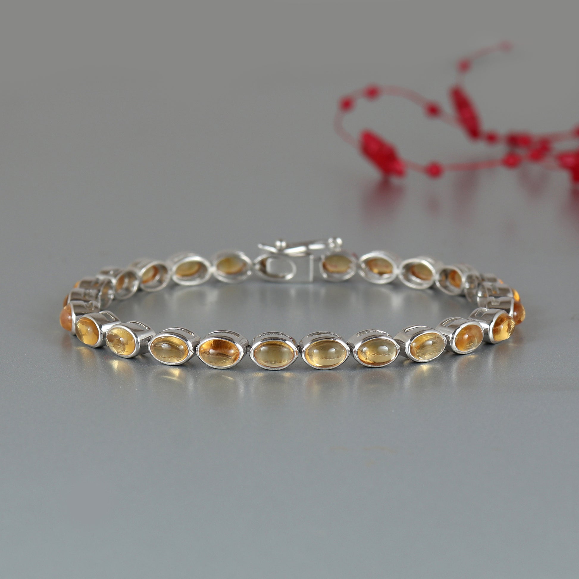Natural Citrine Oval Cabochon Gemstone Bracelet-925 Sterling Silver Tennis Bracelet-Handmade Citrine Bracelet-Wedding Gift for Her Wife
