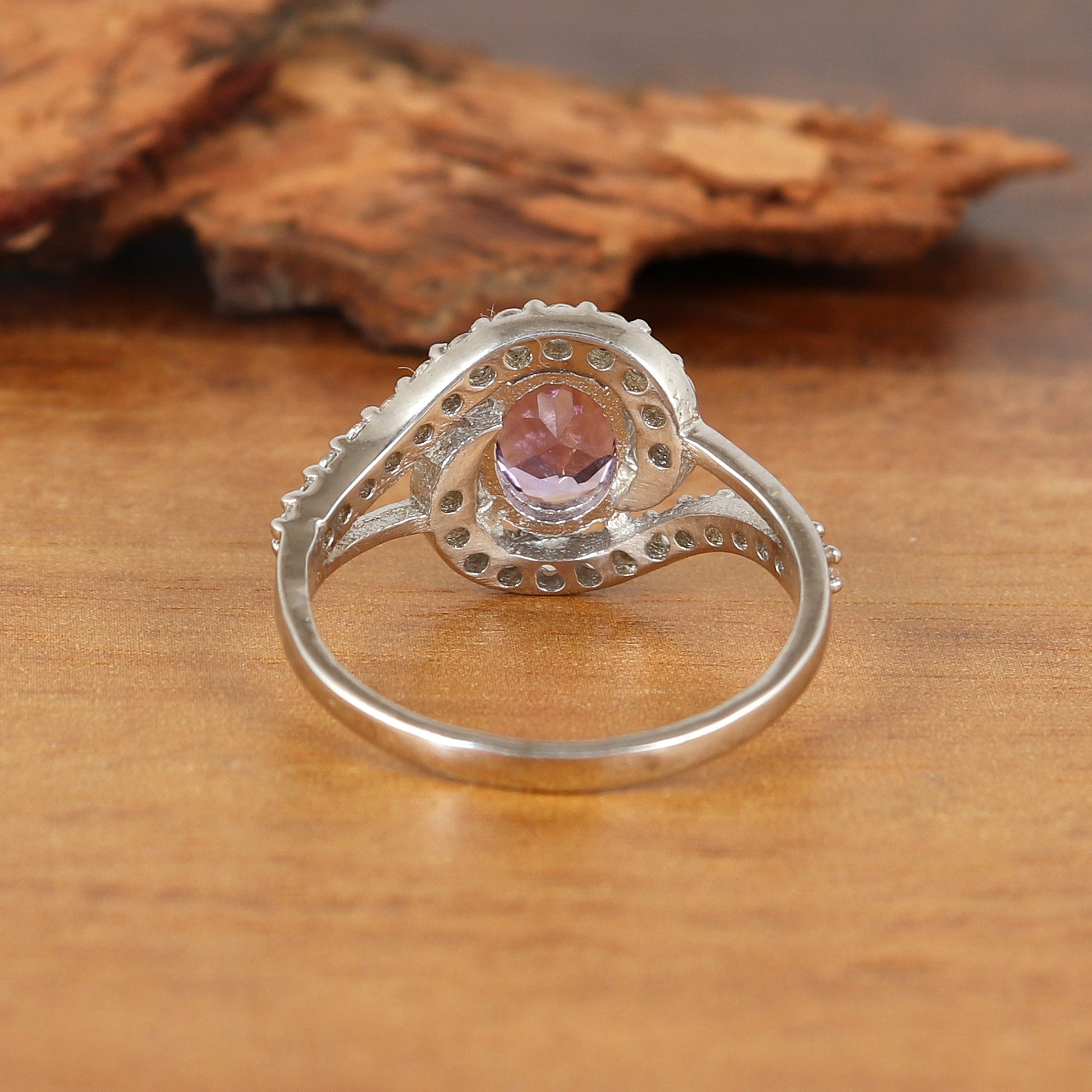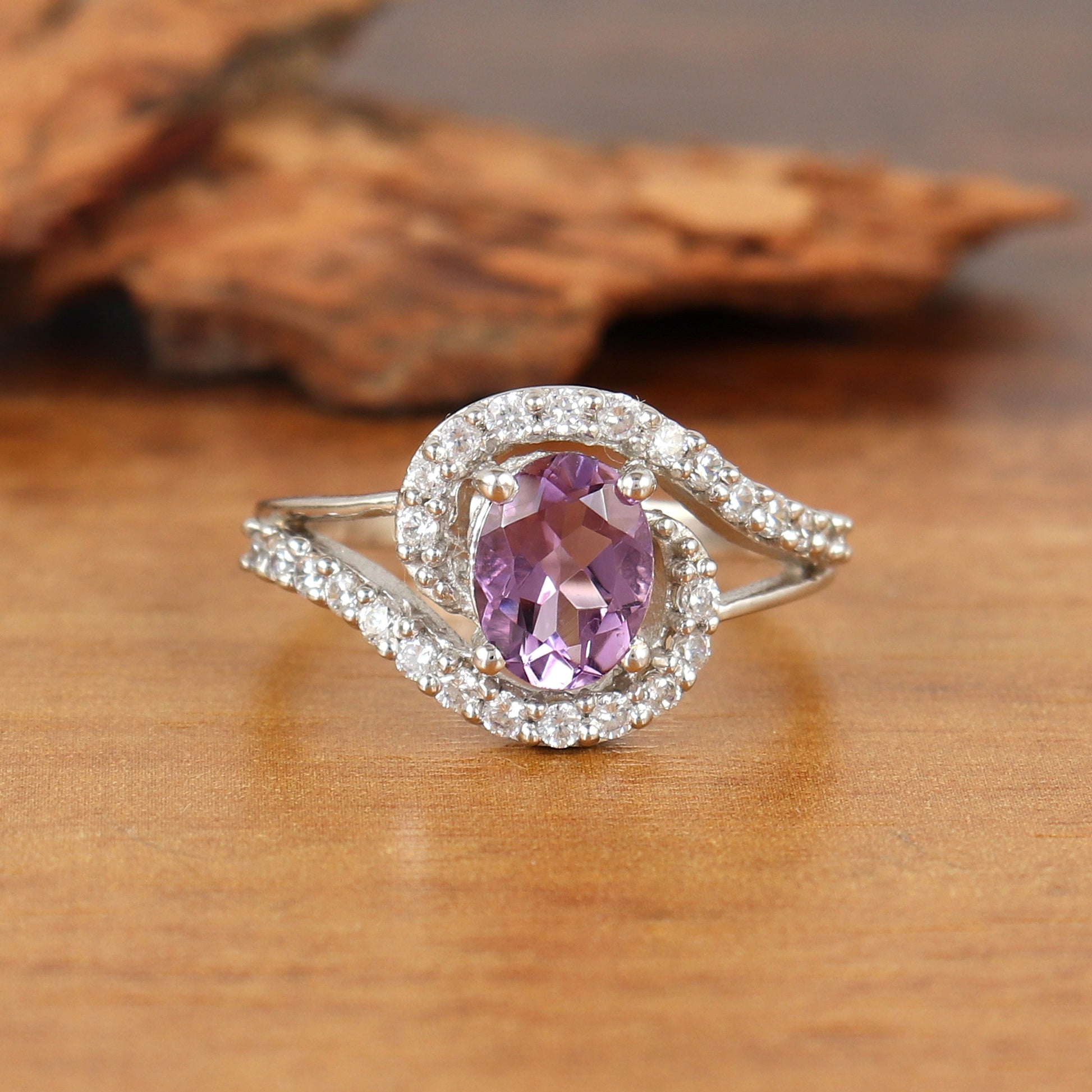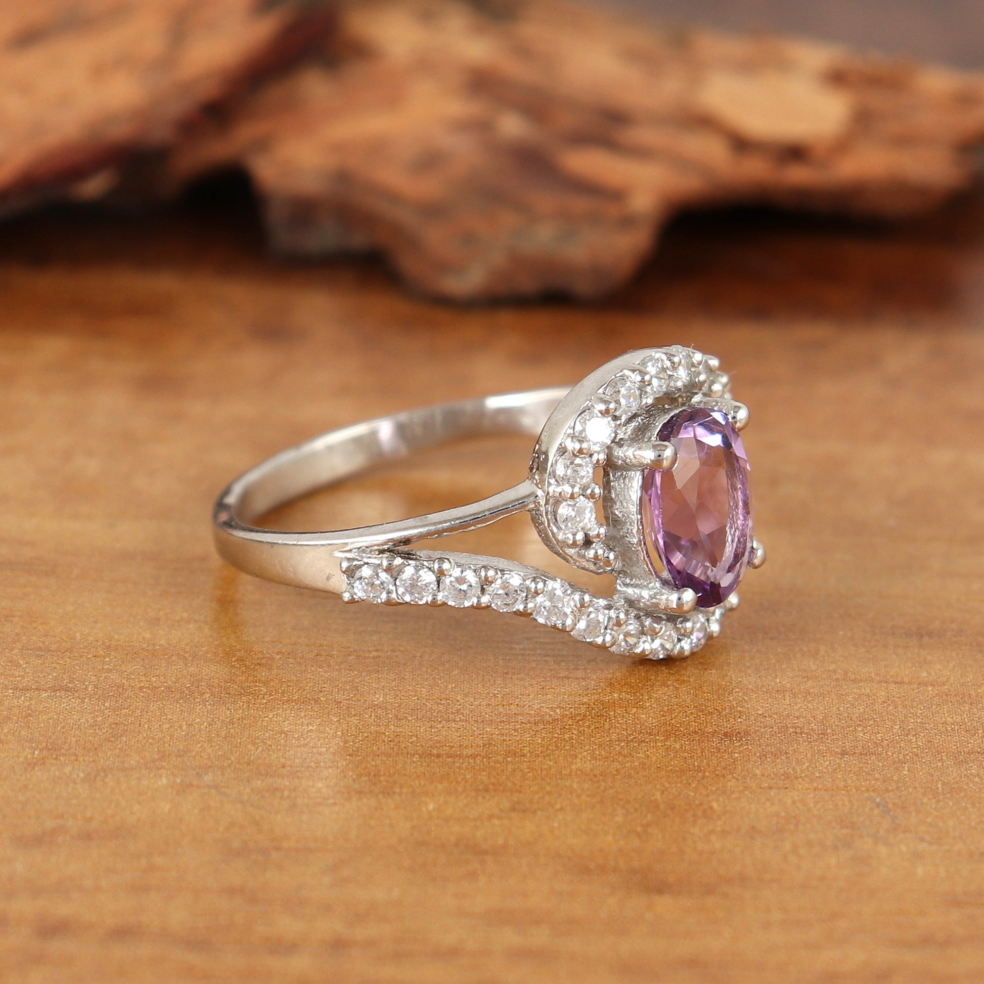 Amethyst Oval Cut Gemstone Cluster Ring 925 Sterling Silver Handmade Ring February Birthstone Jewelry