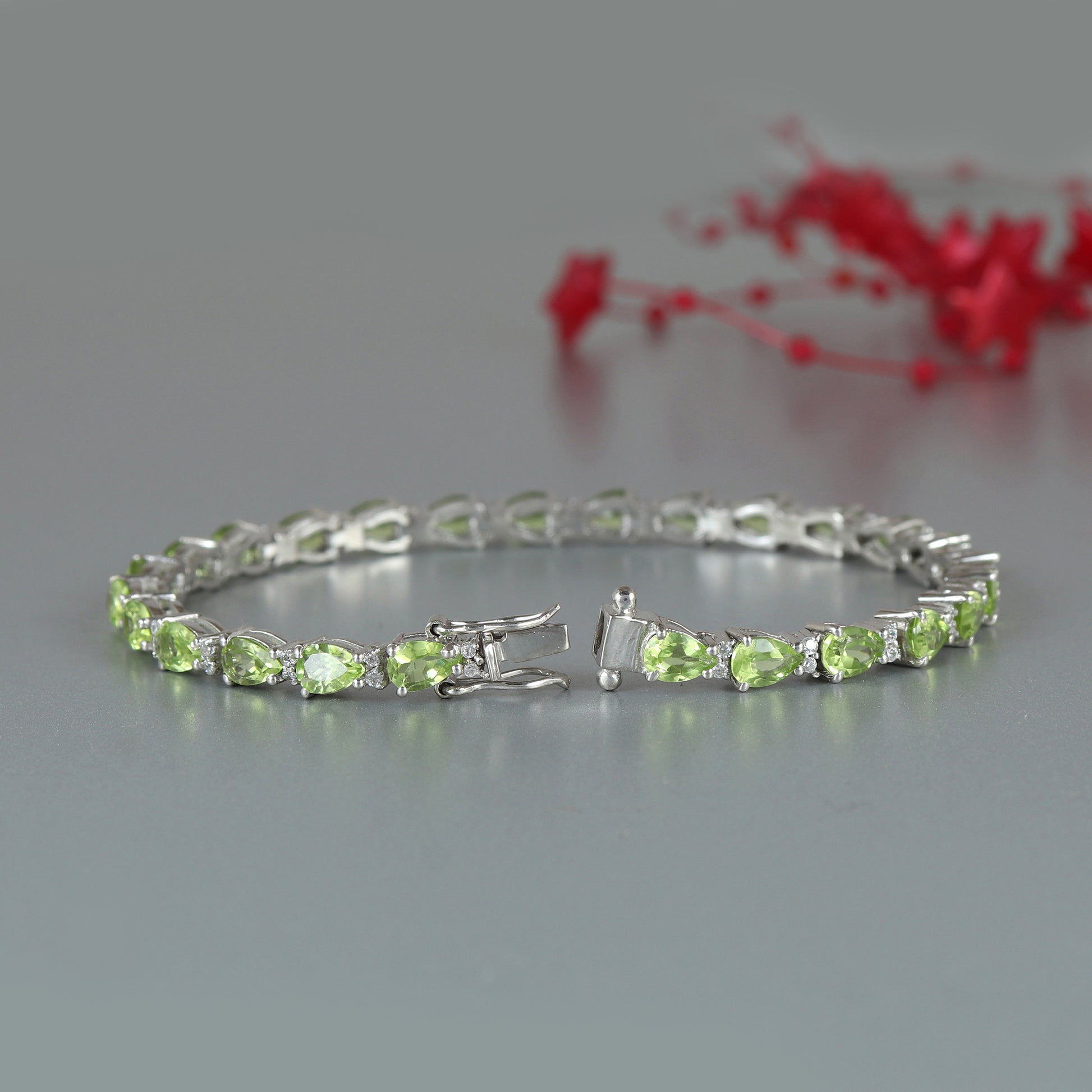 Peridot Tennis Bracelet-925 Sterling Silver Bracelet-Pear Gemstone Bracelet-Green Peridot Bracelet-August Birthstone-Wedding Gift for Her