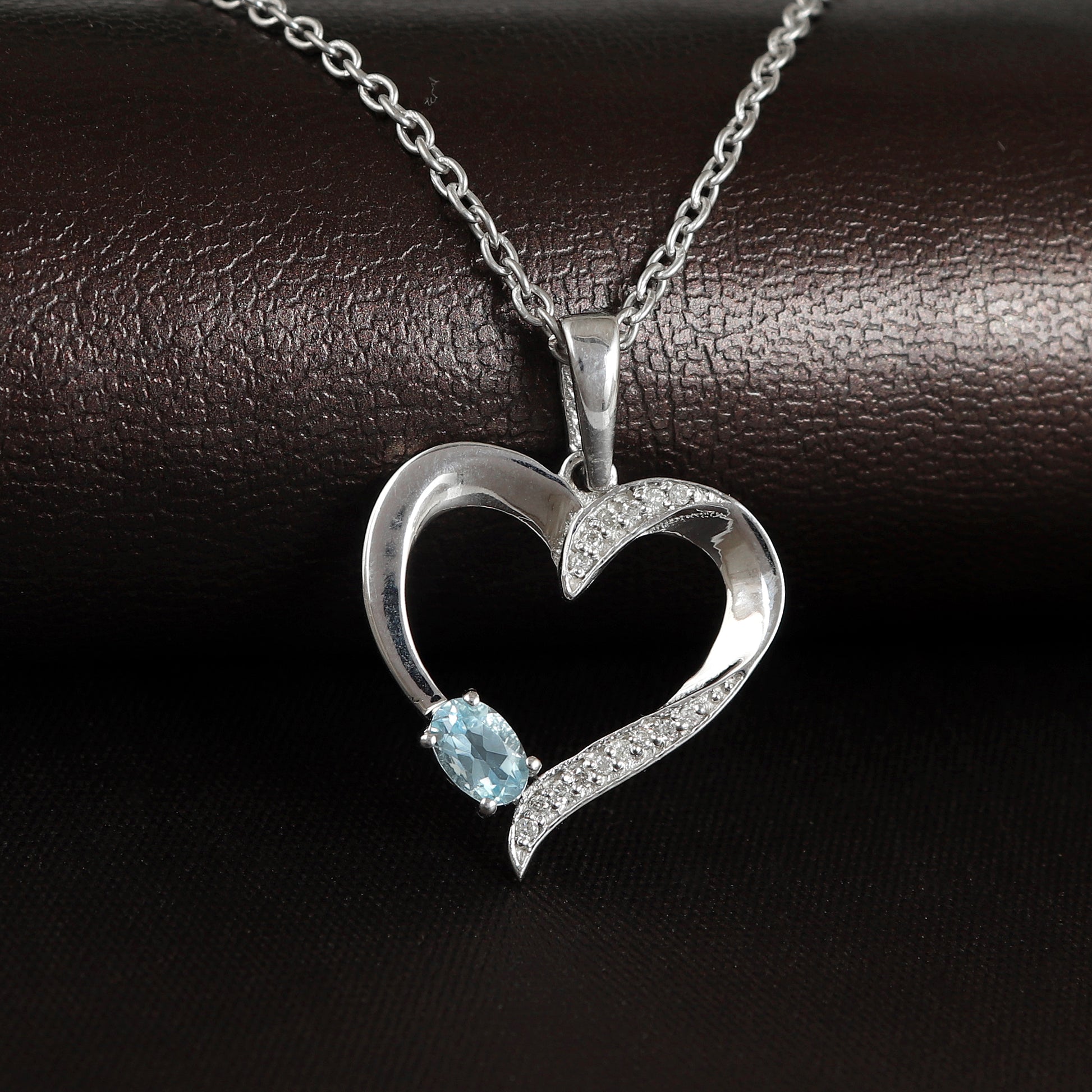 Natural Aquamarine Oval Cut Gemstone Pendant-925 Sterling Silver Pendant-March Birthstone Pendant-Heart Shape Pendant-Chain Pendant for Gift