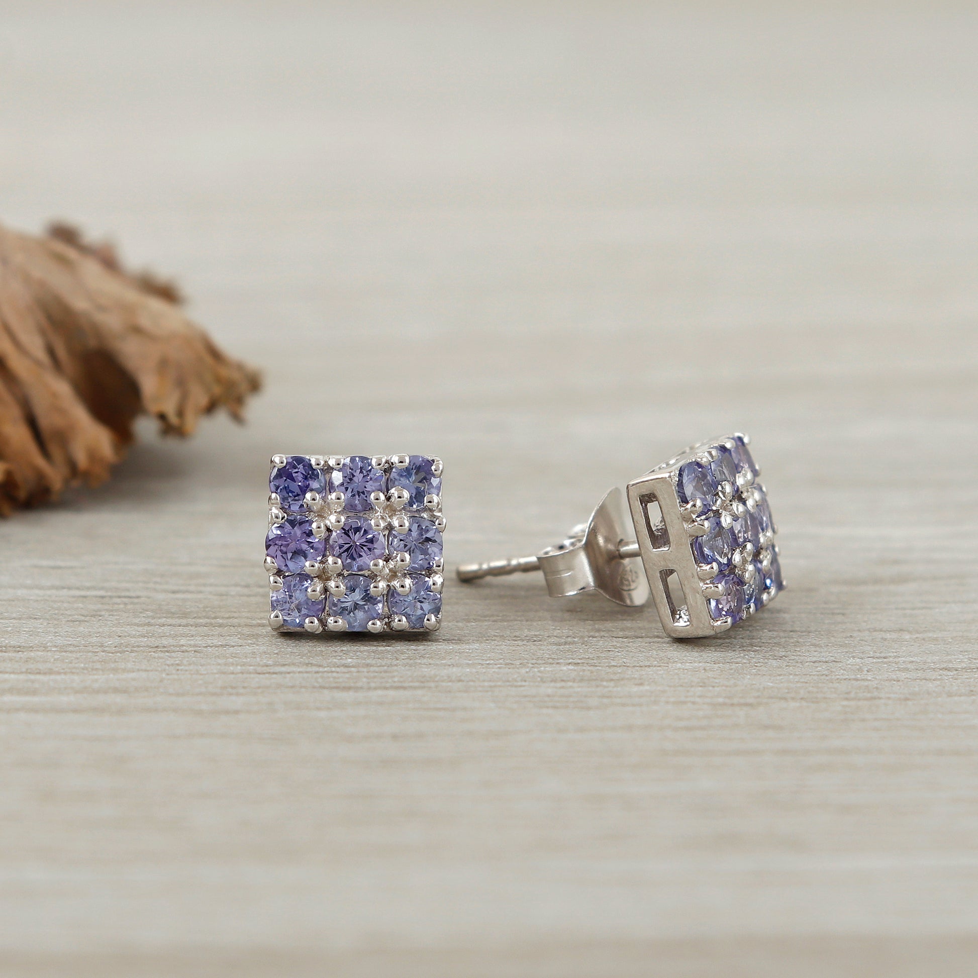 Natural Tanzanite Round Cut Gemstone Stud Earrings-925 Sterling Silver Earrings-December Birthstone Studs-Dainty Tanzanite Studs for Gift