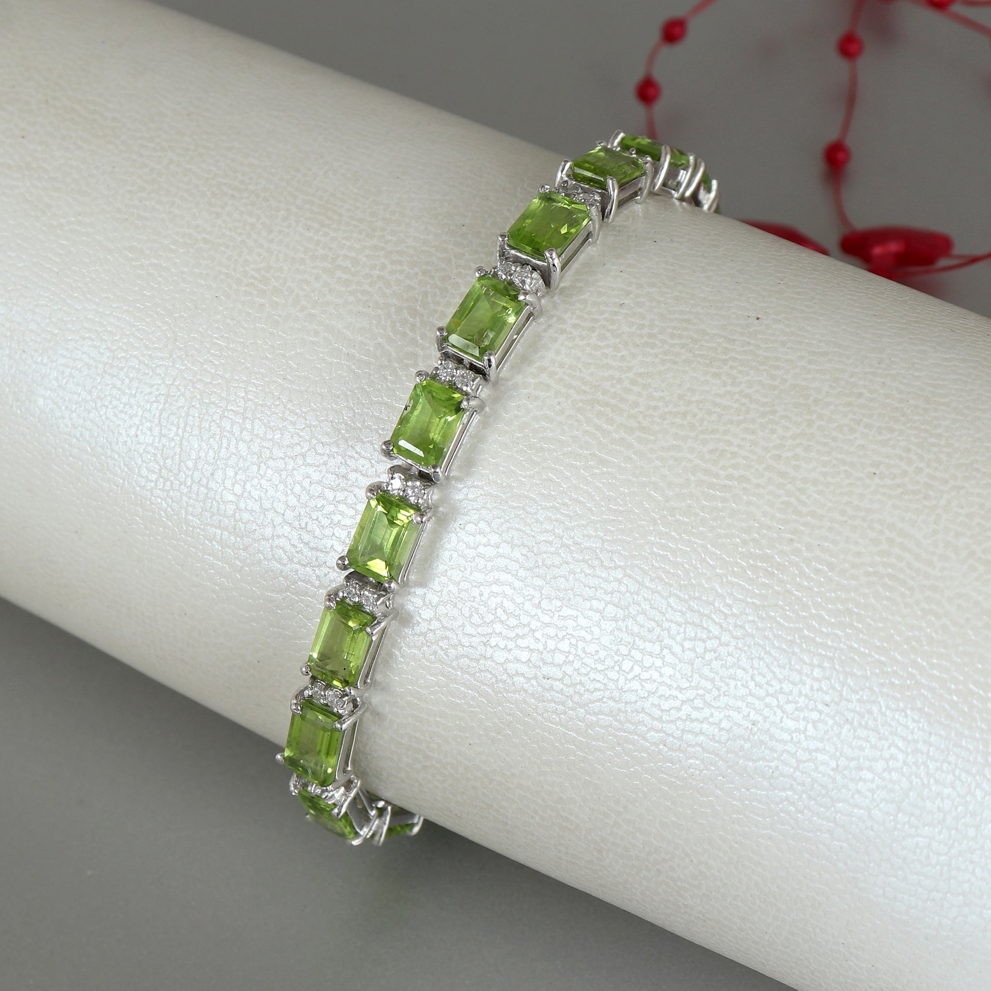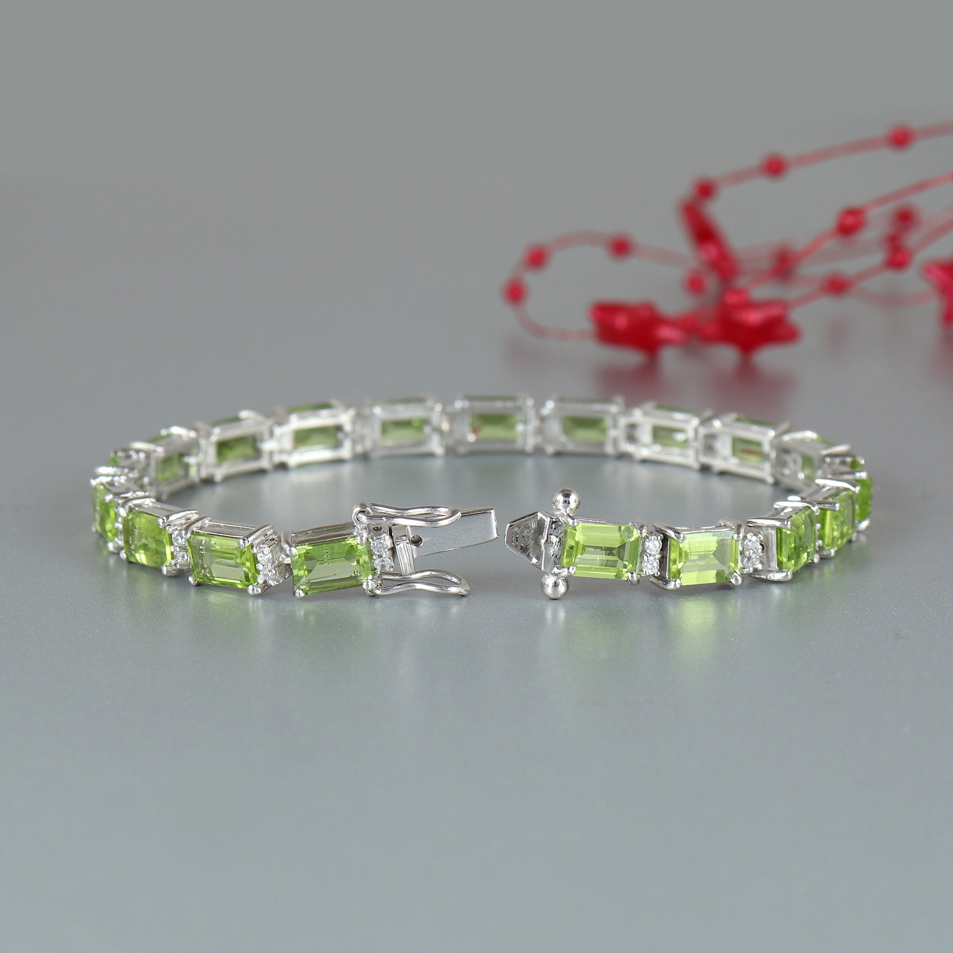 Peridot Tennis Bracelet-925 Sterling Silver Bracelet-7x5mm Octagon Gemstone Bracelet-August Birthstone Bracelet-Bridesmaid Bracelet for Gift