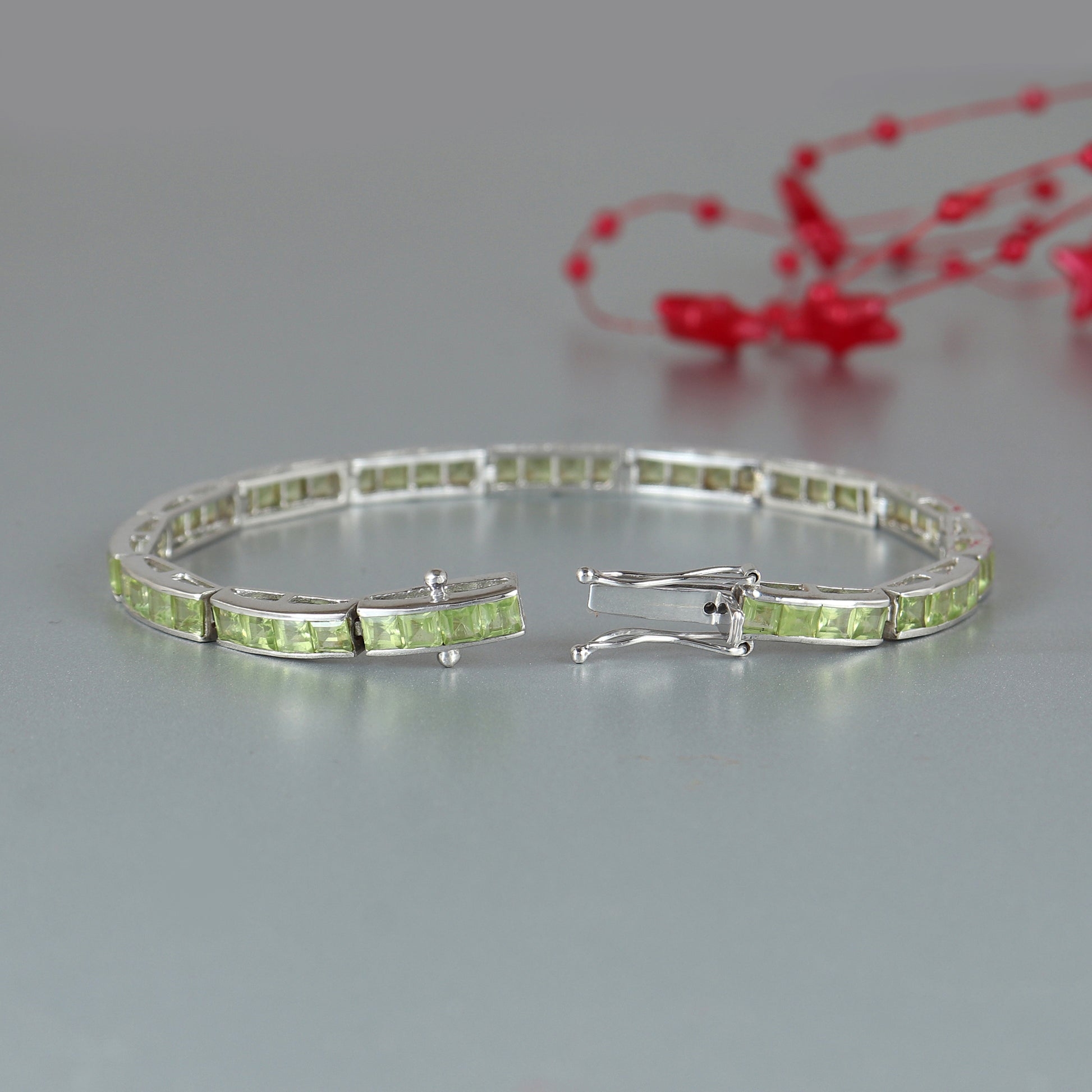 Natural Peridot Tennis Bracelet-925 Sterling Silver Bracelet-Square Cut Gemstone Bracelet-August Birthstone-Peridot Bracelet-Valentine Gift