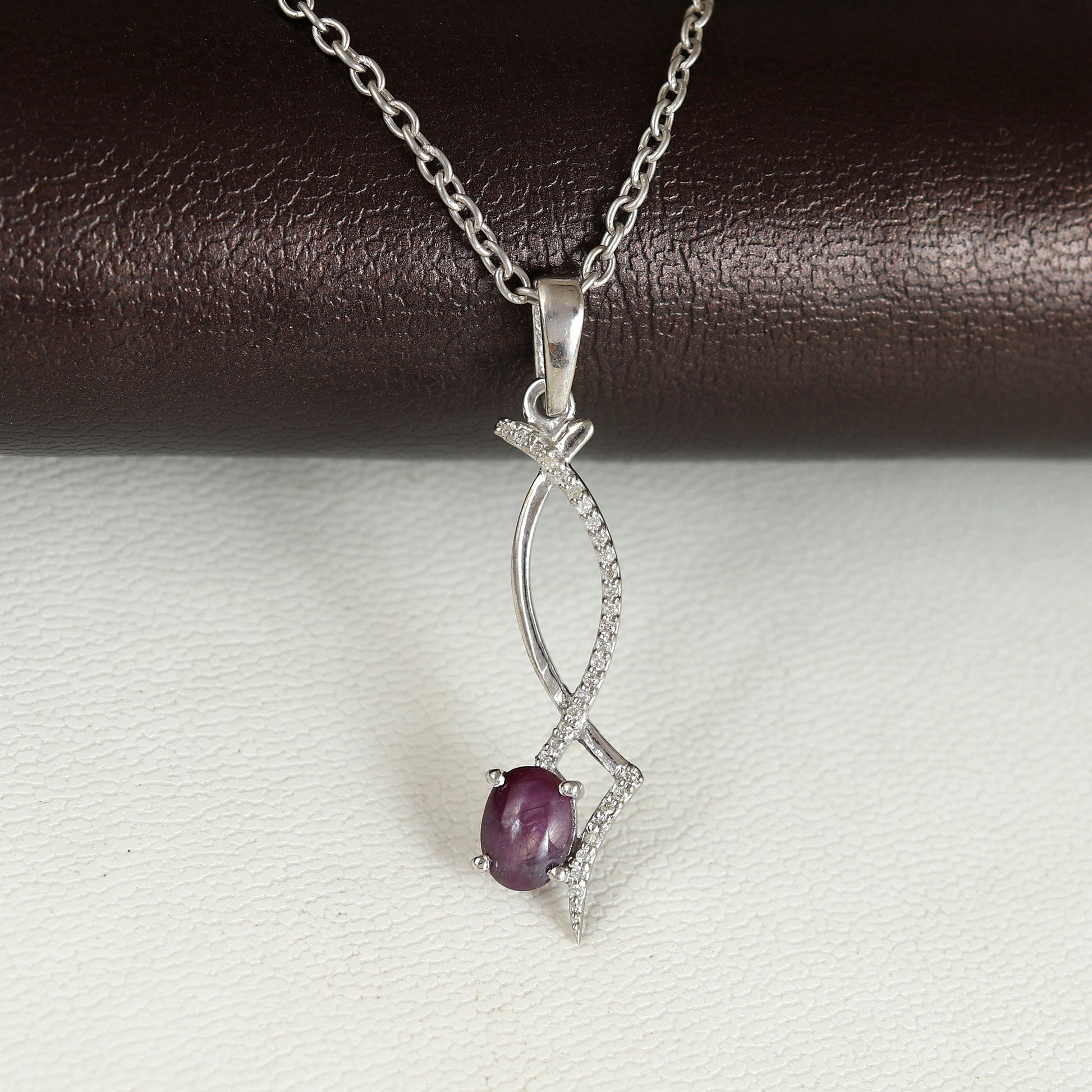 Star Ruby Oval Gemstone Pendant-925 Sterling Silver-Dainty Star Ruby Pendant-Silver Chain Pendant-July Birthstone Pendant-Wedding Gift Her