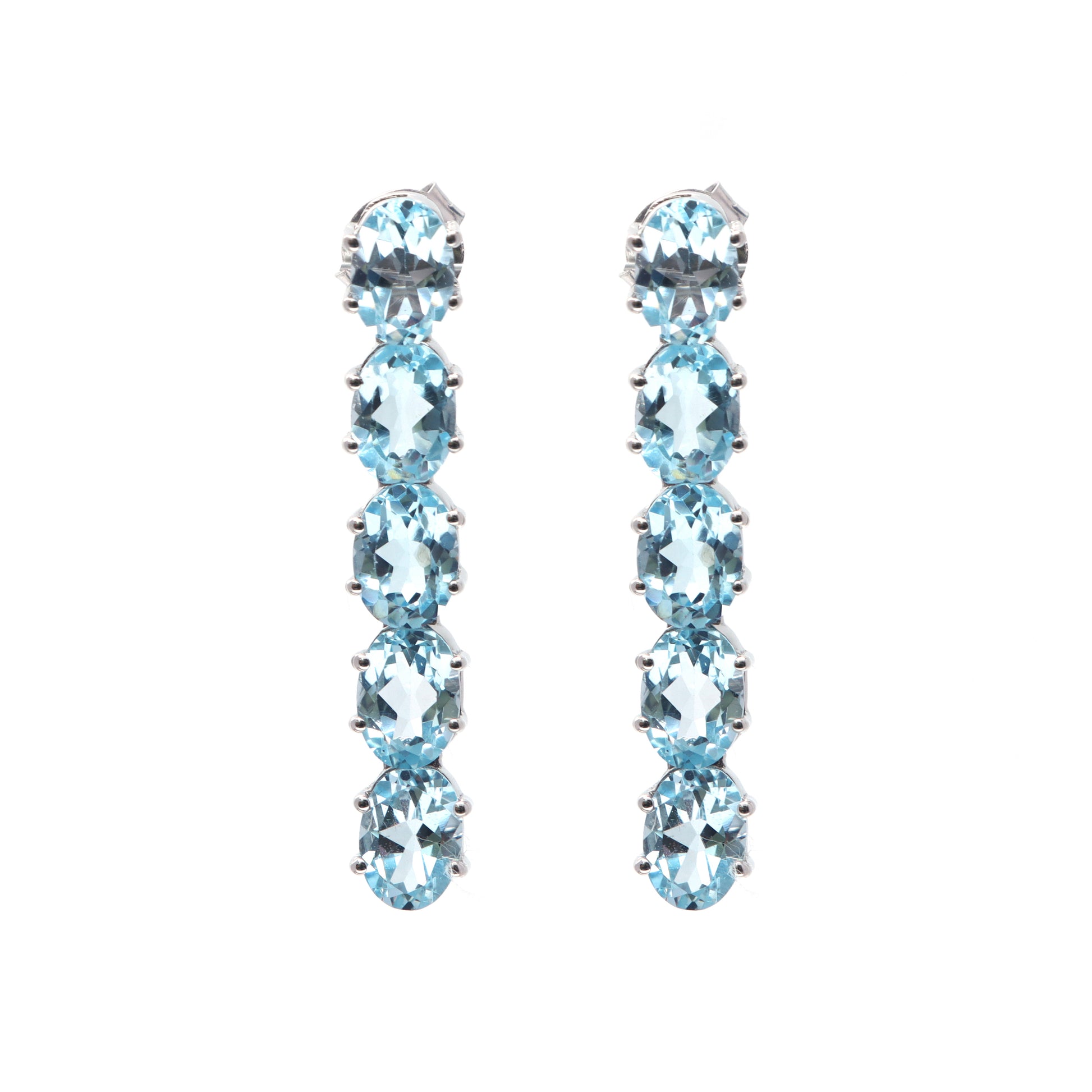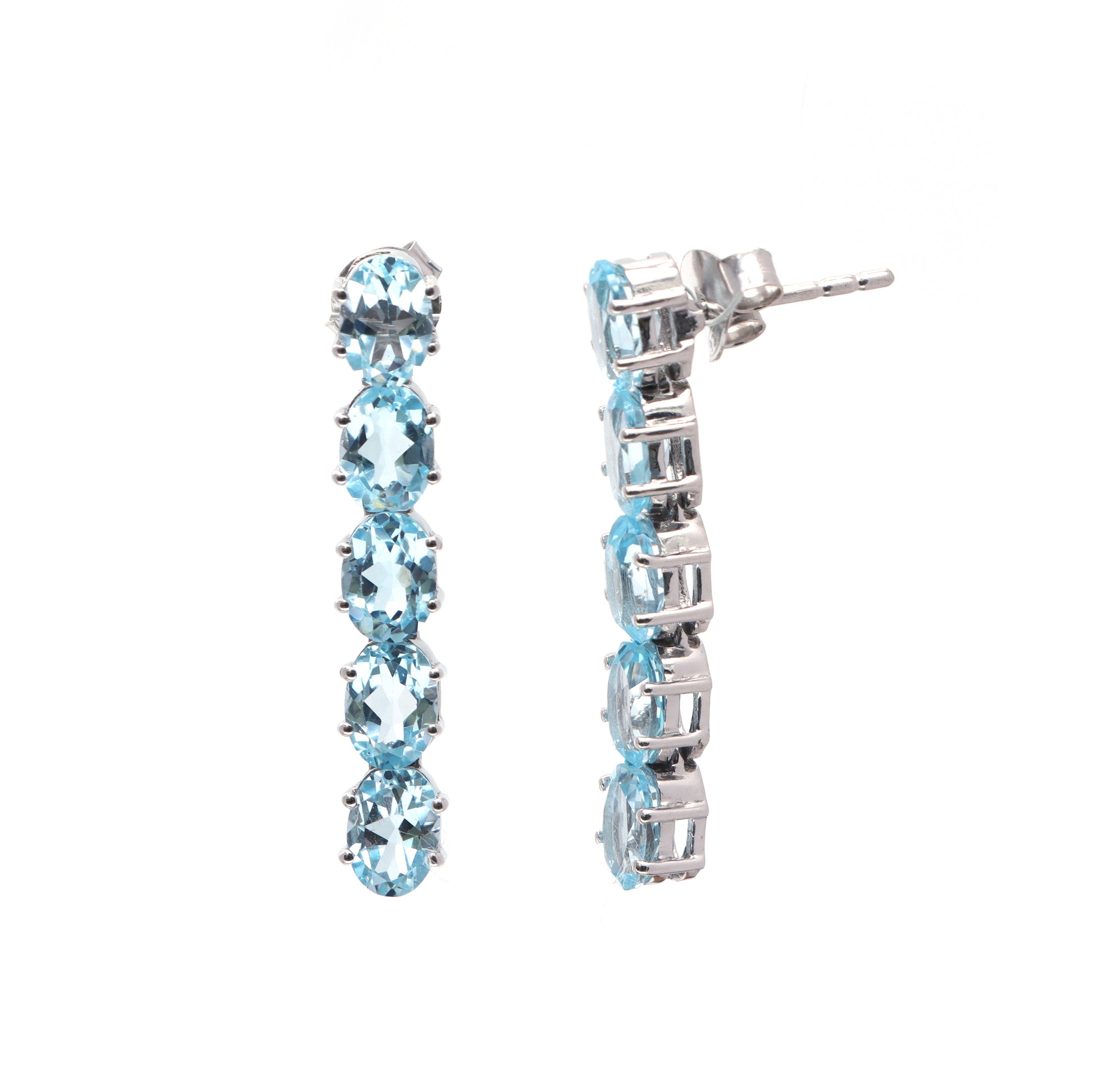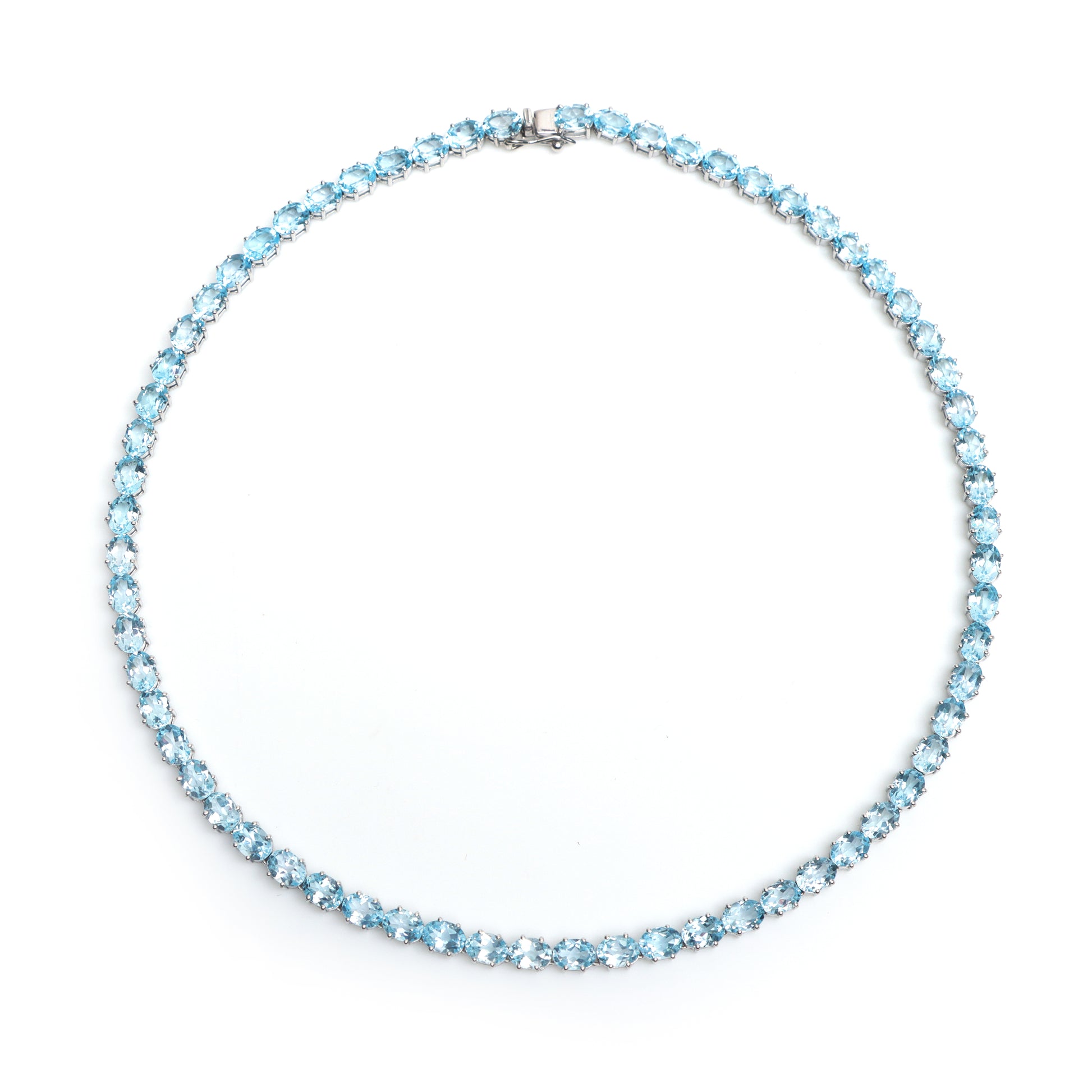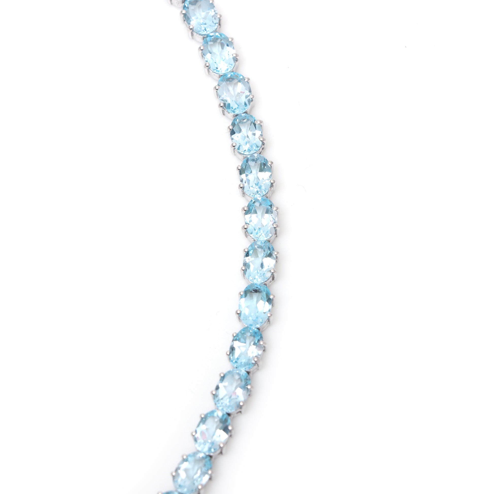 Natural Blue Topaz Oval Cut Gemstone Necklace 925 Sterling Silver Necklace Blue Topaz Tennis Necklace
