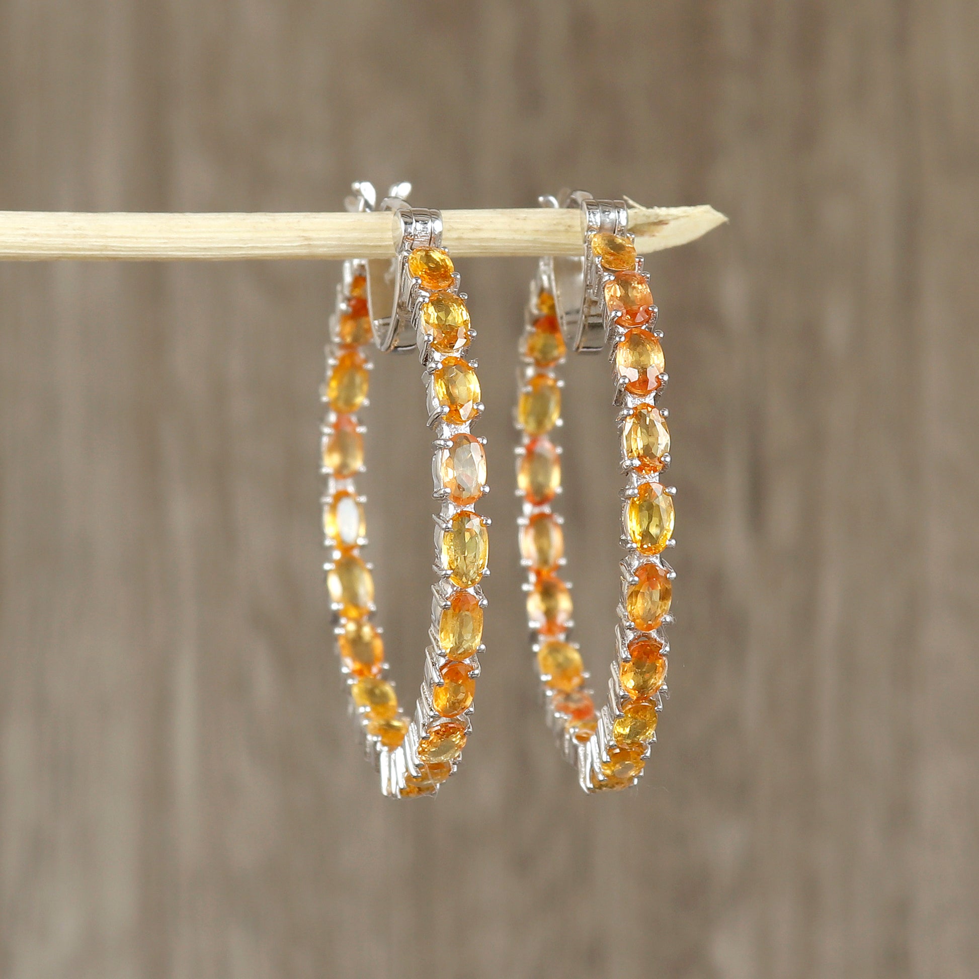 Yellow Sapphire Hoop Earrings-925 Sterling Silver Hoops-Oval Cut Gemstone Hoop Earrings-September Birthstone-Sapphire Jewelry Gift for Her
