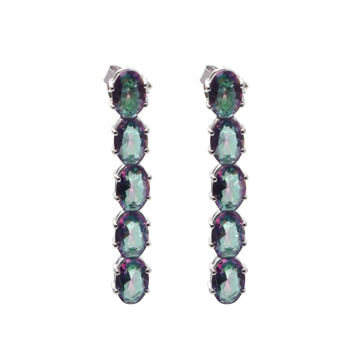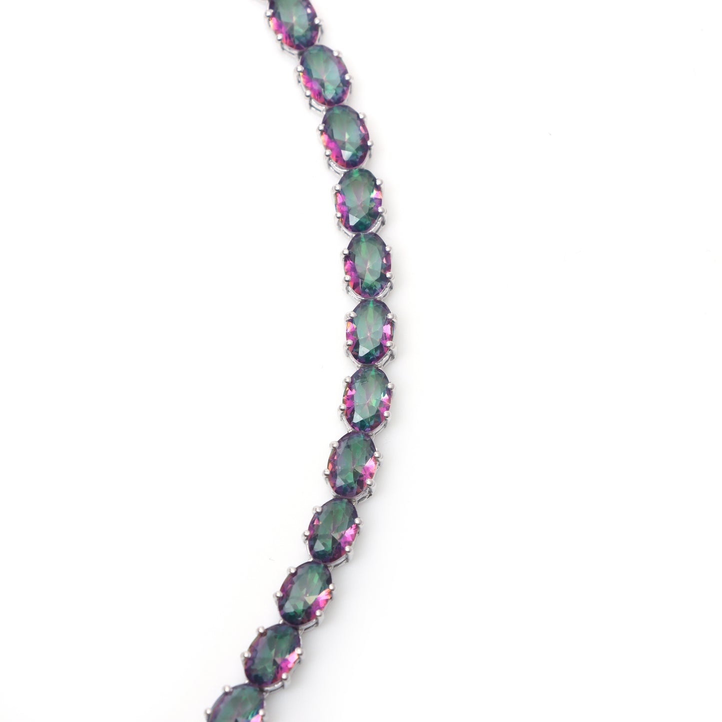 Mystic Topaz Tennis Necklace Set 925 Sterling Silver Oval Cut Gemstone Necklace & Earrings Wedding Anniversary Gift for Her