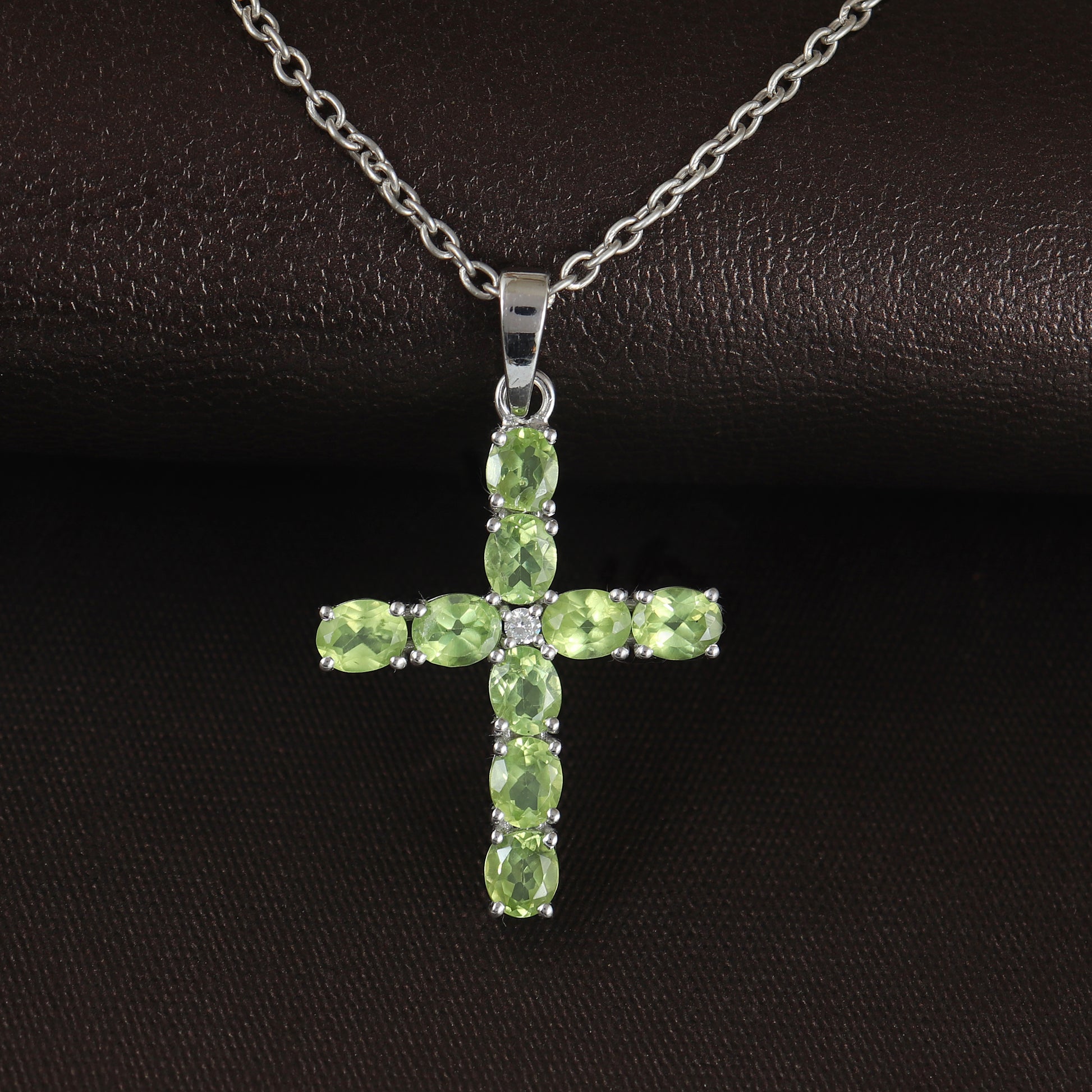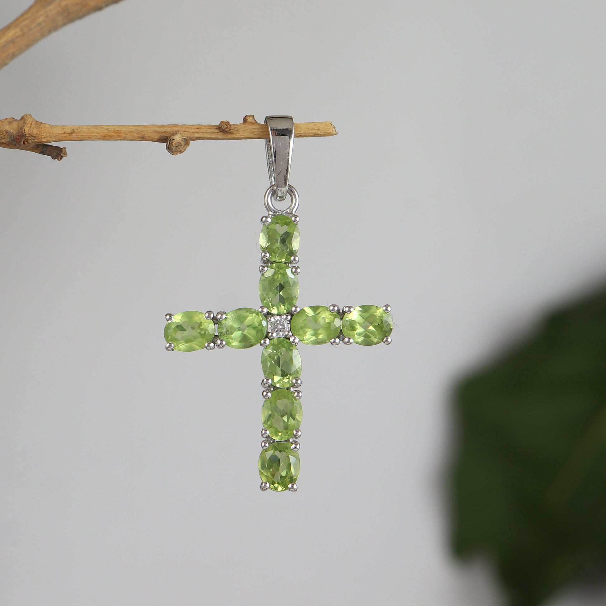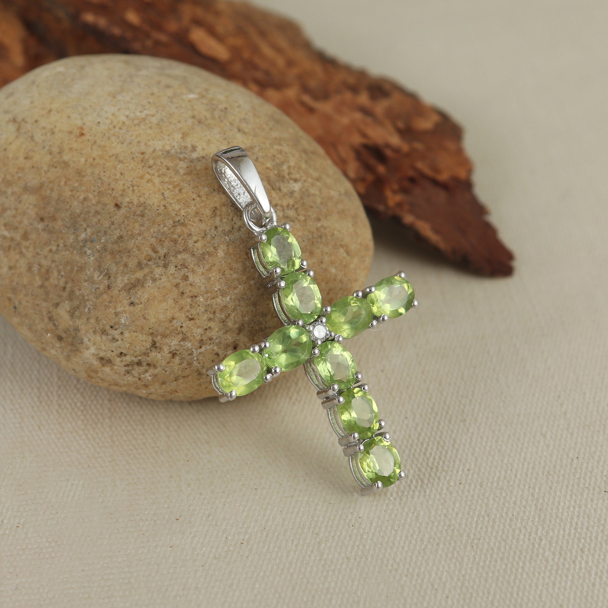 Natural Peridot Oval Cut Gemstone Cross Pendant-925 Sterling Silver Cross-Peridot Cross Pendant-Christmas Gift-Peridot Holy Cross Pendant